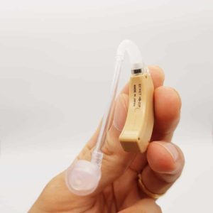 Máy trợ thính Rionet HB-23P được thiết kế không dây móc trên vành tai hỗ trợ người lãng tai nghe tốt hơn. Máy được cấu tạo nhỏ gọn mang tính thẩm mỹ cao, dễ sử dụng. Máy có màu sắc trùng với màu da người, dễ dàng được giấu đi và tăng tính thẩm mỹ cho người đeo.